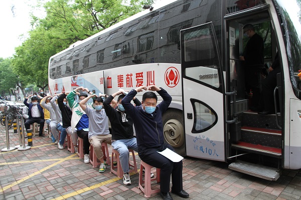 4月28日下午2点,在公司门口,一辆悬挂有“传递四建大爱、共建健康中国”红色条幅的白色献血车,和门口正上方的“河北四建”四个红色大字相互映衬,显得格外醒目;一条由四建职工组成的队伍“长龙”,正在徐徐向前移动着。此时,由公司党委宣传部和团委联合组织的以“传递四建大爱、共建健康中国”为主题的迎“五一”庆“五四”无偿献血活动,正在有条不紊进行中。公司机关以及附近片区的各单位职工共计48人参与。