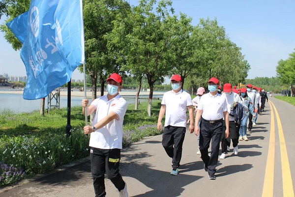 “我们走在大路上,意气风发斗志昂扬……”最先进行的是环公园健步走,伴随着嘹亮的歌声,职工们迈着矫健的步伐,呼吸着清新的空气徒步走在环湖景观大道上。
